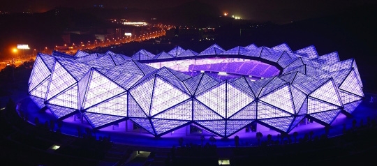 作為一個新興的建筑形式,很多膜結構建筑給人的感覺是超越時代的新穎,這就決定了我們不能選用太低端的膜材,那樣會拉低整個建筑的品位,但是用最高檔的ETFE膜又太貴,綜合來說,PTFE這個中等偏上的膜材是性價比最優的。