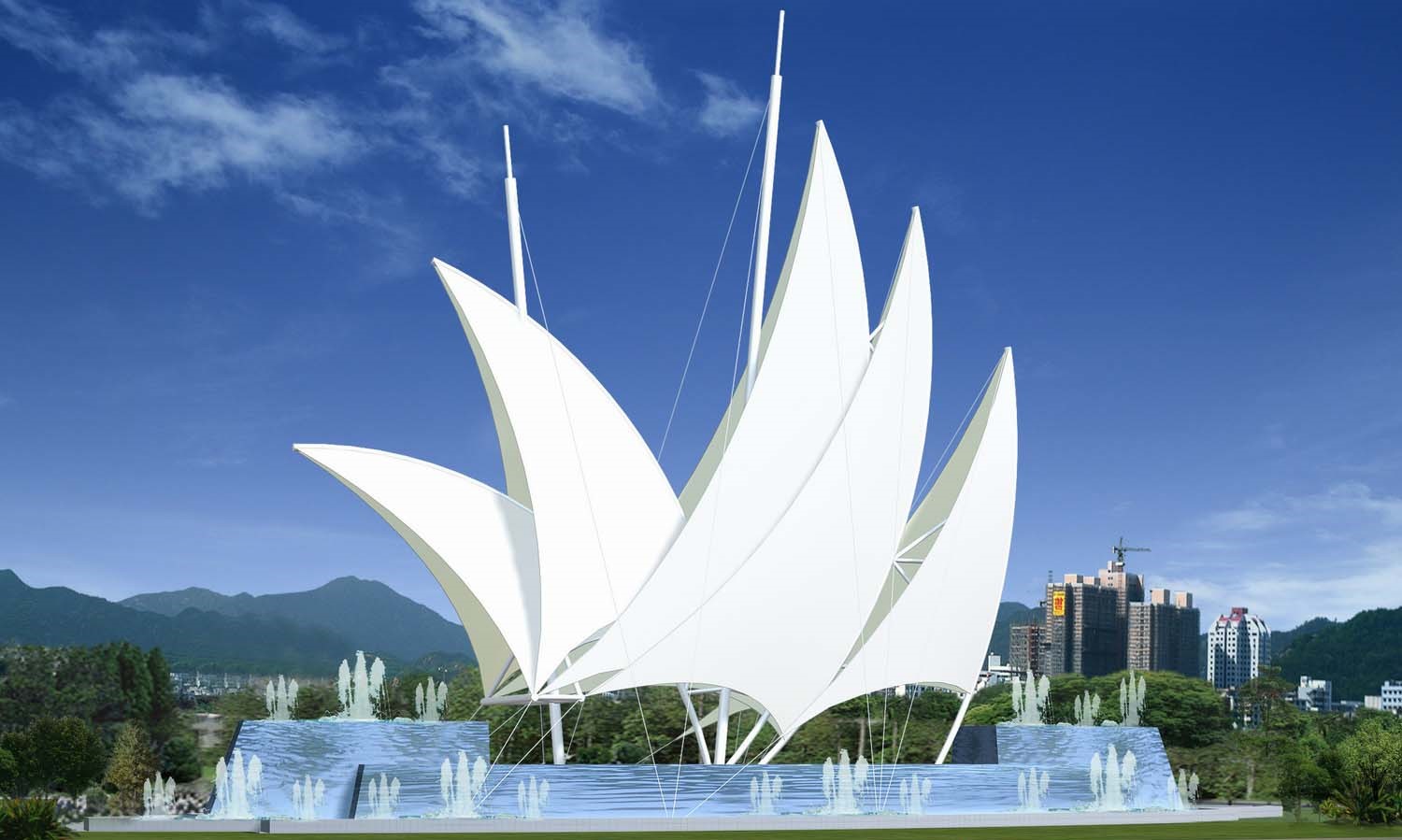 膜材撕裂強度遠小于其抗拉強度,而撕裂常由一個小缺口開始,因此應防止初始缺陷的產生。在結構設計時不應使膜材料兩個主軸方向的拉力值相差太多,避免單向纖維的拉斷使膜面破損,同時應采用抗撕裂強度較高的膜材產品,并加強在裁剪、運輸、安裝過程中對膜材的保護。