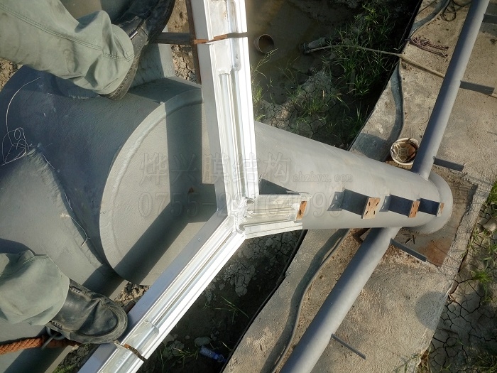 對連云港薔薇湖ETFE膜結構項目,我們燁興非常重視,現場施工人員一直都是滿編狀態。從照片拍攝的幾個角度來看,對3#球最后一圈桿件的吊裝和加焊是全方位排開進行的,人員馬力全開,力爭提前完工。