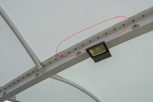 一般如果膜材抗疲勞能力弱,膜布會從圖中紅圈部分開始開裂